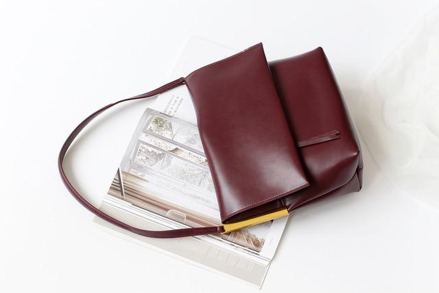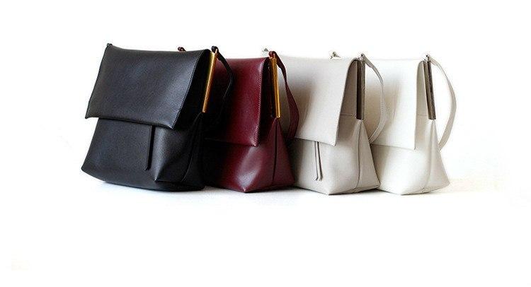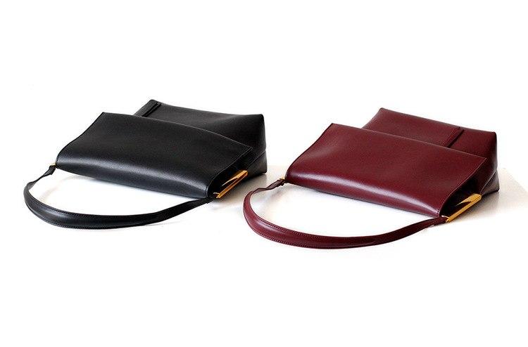 • Genuine Leather Shoulder Bag and Purse with Side Metal Clasps