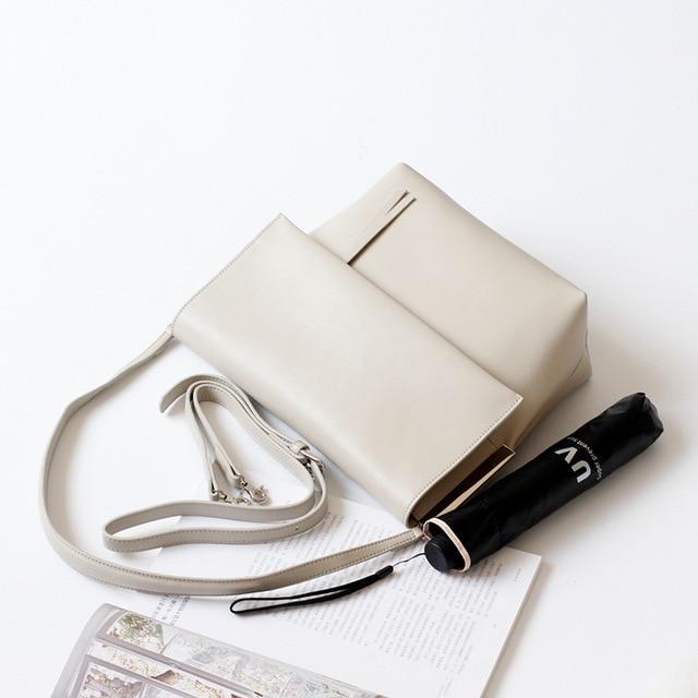 Genuine Leather Shoulder Bag and Purse with Side Metal Clasps